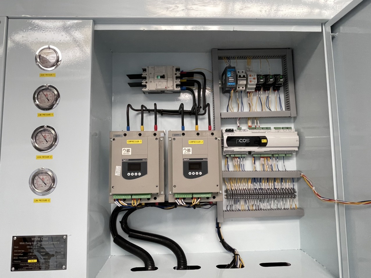 - Hệ thống điều khiển PLC, màn hình điều khiển nhiệt độ, cảnh báo sự cố