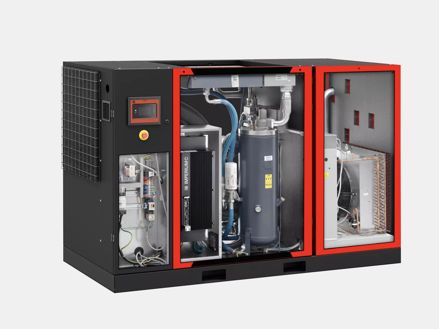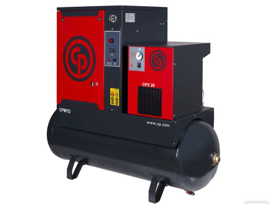 - Máy nén khí trục vít Chicago Pneumatic có chức năng làm tăng áp suất của chất khí bằng cách nén để giảm thể tích thông qua cơ chế 2 trục vít xoắn ngược chiều nhau.