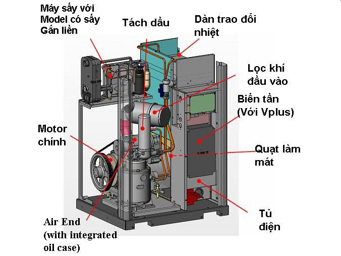 Cấu tạo của máy nén khí trục vít công nghiệp