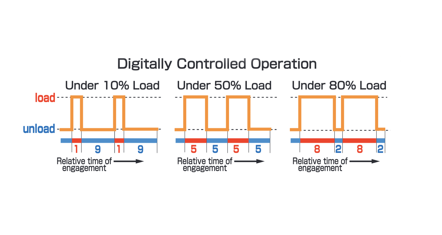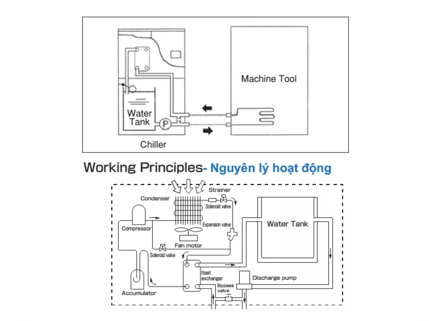 Máy nén được tích hợp bên trong Chiller có cơ cấu ly hợp cho phép nó liên tục ăn khớp và nhả khớp, bằng cách thay đổi tốc độ chu trình ăn khớp/ nhả khớp này nhiệt độ của chất lỏng được làm mát có thể được kiểm soát chính xác.