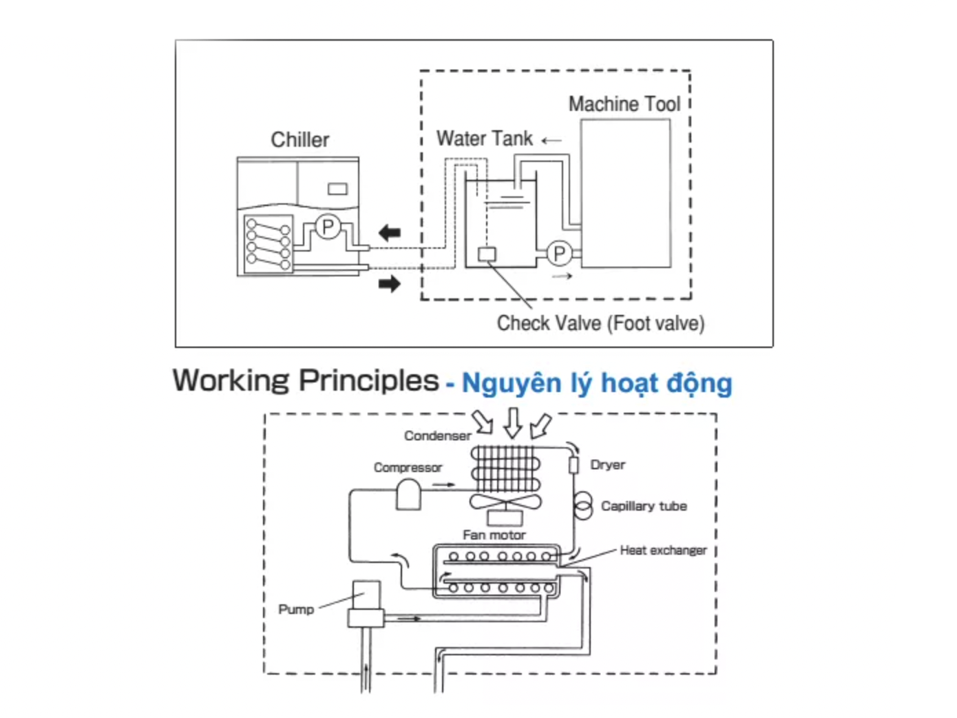 • Quạt thổi lên ( Chiller inverter gió giải nhiệt )